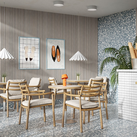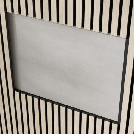 Изготовлен из экологичного волокна, устойчив к влаге, долговечен, воздухопроницаем, преломляет и подавляет звуковые волны. Декор панелей – рейки из мебельного МДФ, облицованные экошпоном: устойчивы к деформации, создают визуальный и тактильный эффект комфорта. Аналог деревянной рейки для стен в интерьере.